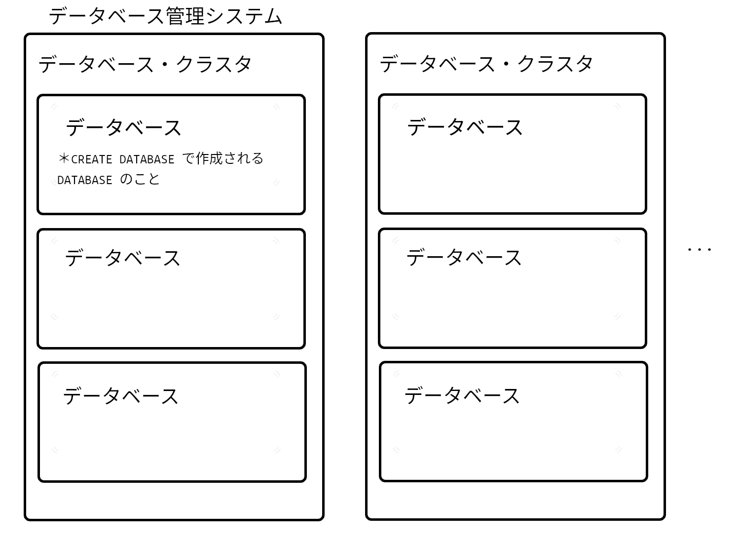 データベース管理システムの中にデータ・クラスタがあり、データベース・クラスタは複数のデータベースを管理しています。